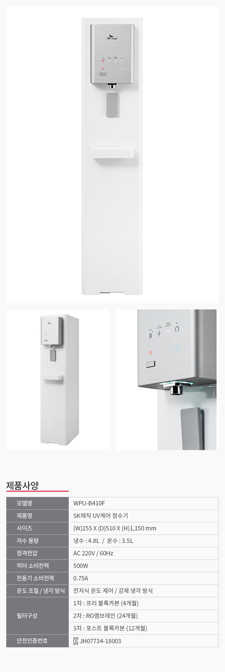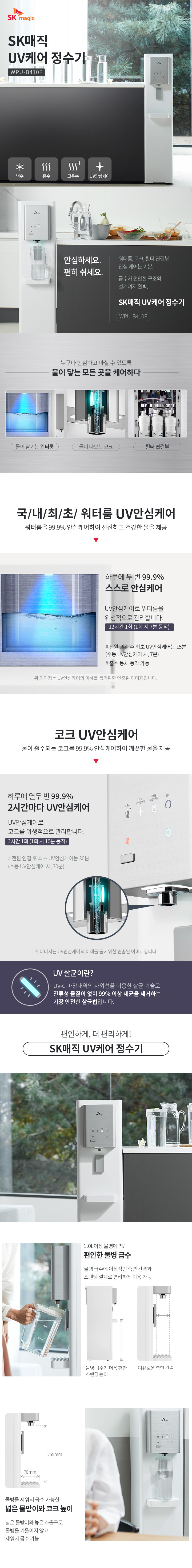 [지하수설치/방문관리]SK매직 워터룸 UV안심케어(RO) 냉온 스탠드형 대용량 냉온정수기렌탈 WPUB410F