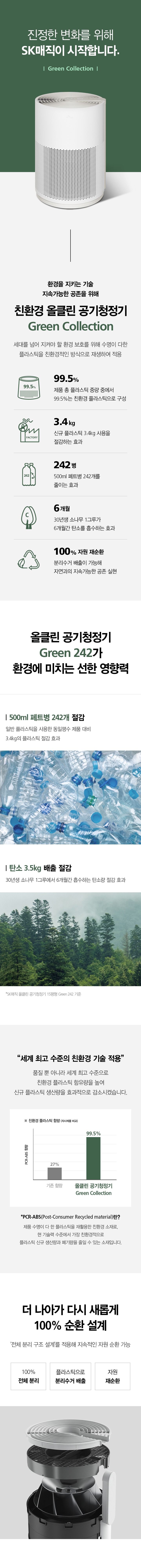 [셀프관리] SK매직 친환경 올클린 공기청정기 15평형 ACL15C1ASSWH Green242
