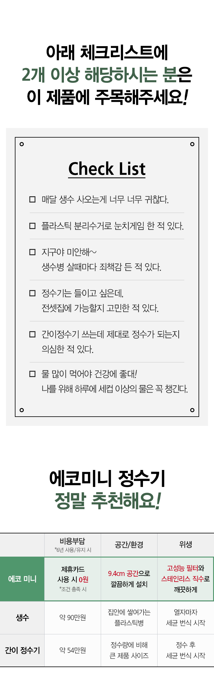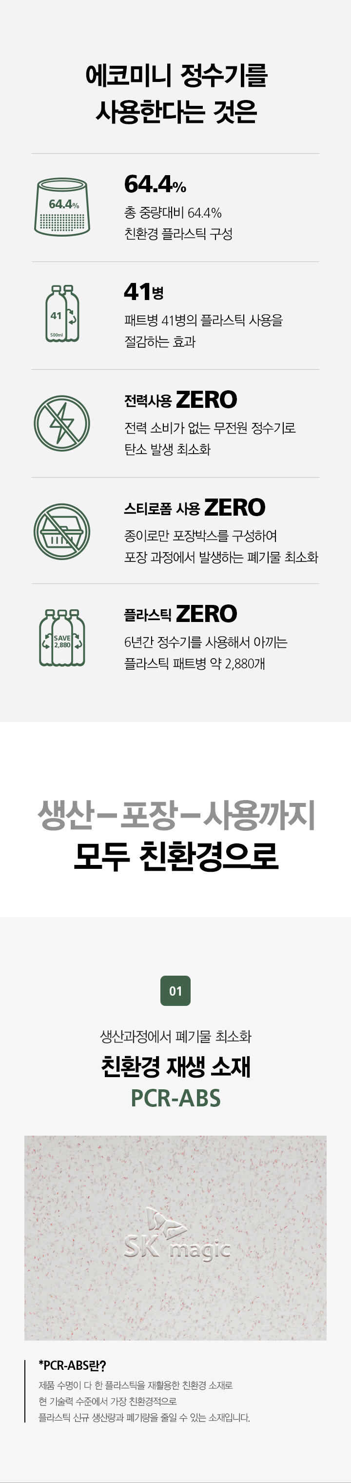 [셀프관리]SK매직 친환경 무전원 에코미니 정수전용정수기 WPUGBC102SCE