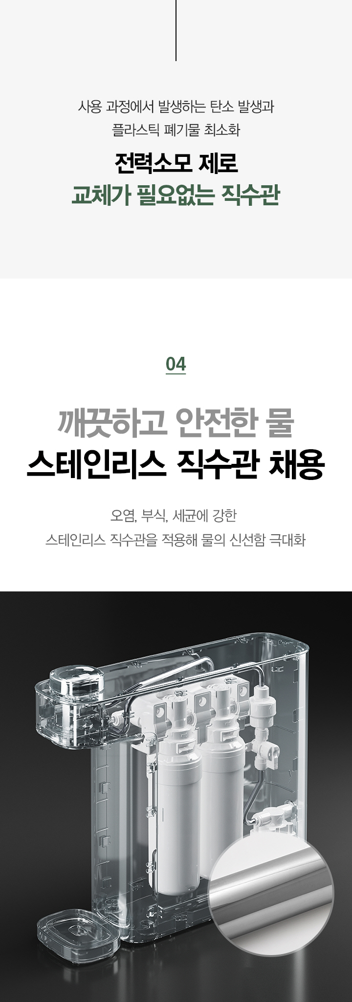 • 깨끗하고 안전한 물, 스테인리스 직수관 채용
