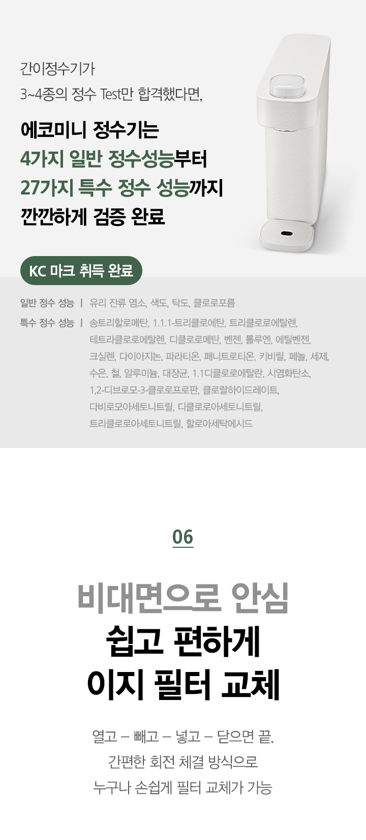 • 총 31종의 정수기 테스트를 통과한 압도적인 필터 성능