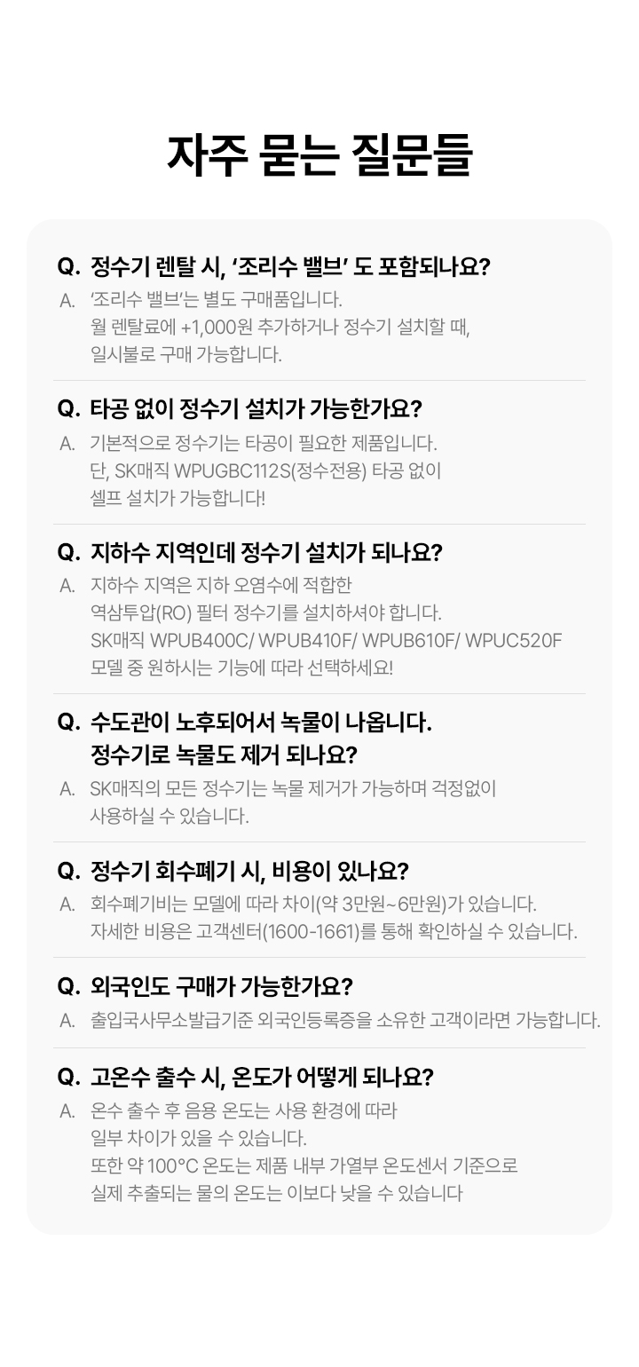 • 총 렌탈료 : 3,578,800원(등록비 + 설치비 + 6년 무상 A/S 포함)