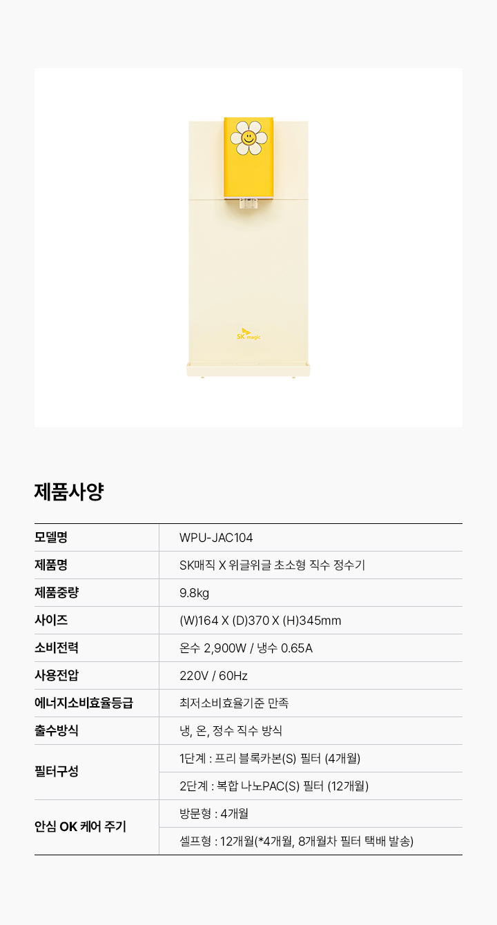 [방문관리] SK매직 초소형 직수 냉온정수기 WPUJAC104SWW
