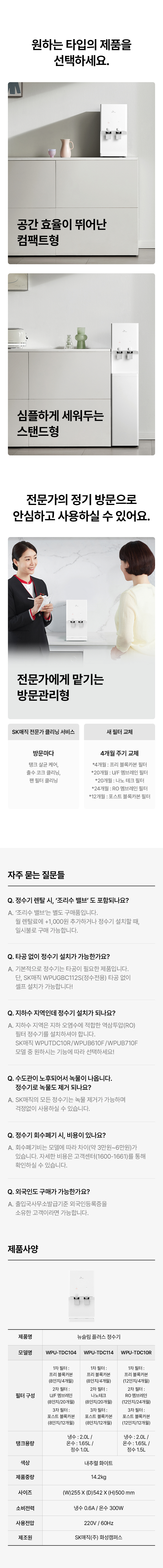 [방문관리]SK매직 뉴슬림 플러스 냉온정수기 나노필터 WPUTDC114RNW